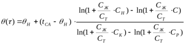 Для периода падающей скорости сушки температура материала может быть рассчитана по след. зависимости: