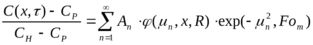 При решении диффузионных уравнений массопроводности при граничн. условиях 3 рода методом разделения переменных получают след. уравнения для расчета влагосодержания частицы канонической формы