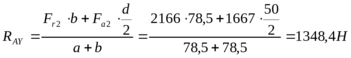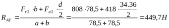 Pа = 303 Н – осевая нагрузка (в связи с раздвоением ступени);