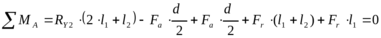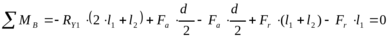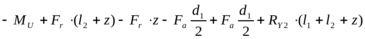 ; MU – RX2 · (z + l1) – Ft · z = 0;