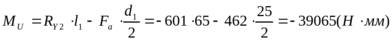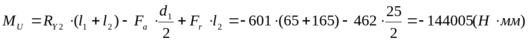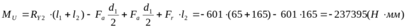 при z = l2: MU = RX2 · (z + l1) + Ft · l2 =1584∙(65+165)+1584∙165=625680 (H·мм).