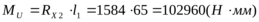 при z = l1: MU = RX1 · l1 = 1584∙65 = 102960 (H·мм).