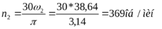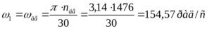 1.4. Угловые скорости и частоты вращения на валах: