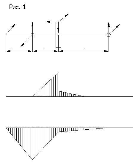 Определяем величину изгибающего момента от сил, лежащих в вертикальной плоскости.