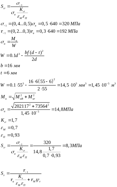 Из эпюр и конструкции видно, что требуется проверить диаметр 55 в сечении по шпонки.