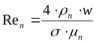 а) критерий Рейнольдса для пара и жидкости в верхней и нижней части колонны: