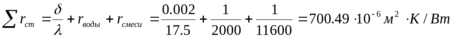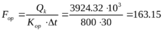 пусть коэффициент теплопередачи Кор=800Вт/(м2.К)