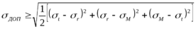 V. Укажите верную запись IV (энергетической) теории прочности при расчете цилиндрических тонкостенных обечаек на прочность.