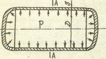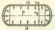 VI. Определите правильное написание уравнения равновесия сил для замкнутой тонкостенной цилиндрической оболочки, нагруженной равномерно распределенным внутренним избыточным давлением в указанном сечении А-А.