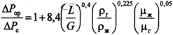 Гидравлическое сопротивление орошаемой насадки при одной и той же скорости газа больше сопротивления сухой вследствие уменьшения свободного объема насадки при орошении. Для определения гидравлического сопротивления орошаемой насадки ΔPор используют уравнение