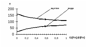 Расчет и построение графика изменения температур теплоносителей при движении вдоль поверхности теплообмена t (f):