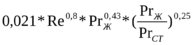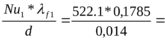 Nu1 = 0,021*187517.60,8*3,3520,43*(3,352 / 4,2)0,25 = 522,1;