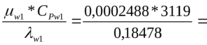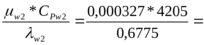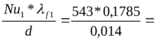 Nu1 = 0,021*187517.60,8*3,3520,43*(3,352 / 4,466)0,25 = 543;