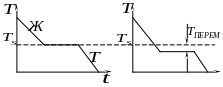 величина энергии в жидком и твёрдом состоянии равна и при этом может идти как кристаллизация, так и переход в жидкое состояние. Процесс кристаллизации описывает кривые охлаждения и нагрева (рис.1.).