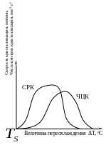 В целом скорость кристаллизации зависит от температуры переохлаждения.