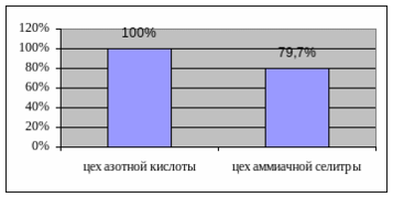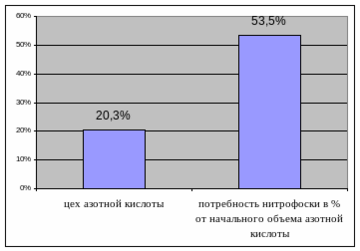 Соотношение мощностей цехов азотной и аммиачной селитры