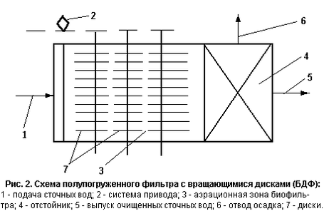 Эти сооружения предназначены для расхода сточных вод до 1000 куб.м в сутки. В качестве загрузки для биодисковых фильтров рекомендуются перфорированные диски, изготовленные из объемных синтетических материалов пониженной плотности (пенопласта, пеностекла).