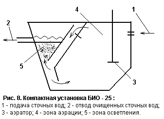 ГПИ «Эстонпроект» была разработана установка БИО заводского изготовления. Она представляет собой аэротенк-отстойник, работающий в режиме продленной аэрации. Принцип работы БИО-25 аналогичен установкам КУ. Продолжительность аэрации около суток. В этих сооружениях использованы эжекторная или пневматическая система аэрации.
