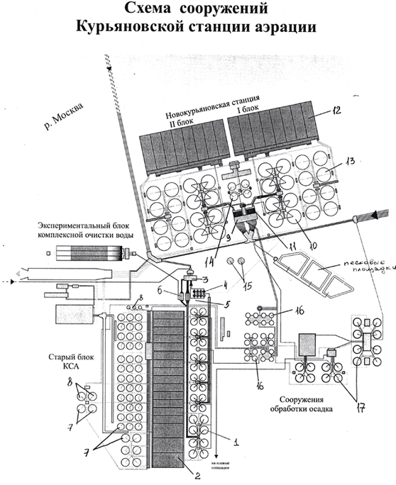 § 11. СХЕМА СООРУЖЕНИЙ КУРЬЯНОВСКОЙ СТАНЦИИ АЭРАЦИИ
