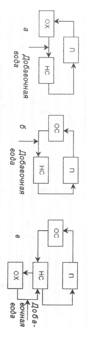 Рис. 2. Схемы оборотного водоснабжения: а) с охлаждением воды; б) с очисткой воды; в) с охлаждением и очисткой воды;