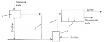 Схема:1-питающий резервуар;2-трубопровод; 3-аэратор;4 — труба эрлифта; 5 — флотатор