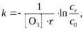 где τ-продолжительность озонирования, [с0], [сτ]-начальная и конечная концентра-ции окисляемого вещества, мгл–1; [О3] — средняя концентрация озона.
