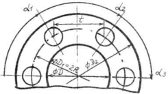 - центральный угол между осями соседних отверстий в полярной системе координат.