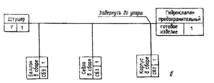 При наличии образца изделия составление ТСС упрощается. В этом случае последовательность сборки может быть установлена в процессе его пробной разборки. ТСС должны быть снабжены надписями-сносками, поясняющими характер сборочных соединений и выполняемый при сборке контроль (запрессовать, расклепать, затянуть с определенным крутящим моментом, отрегулировать положение, проверить зазор и т.д.).
