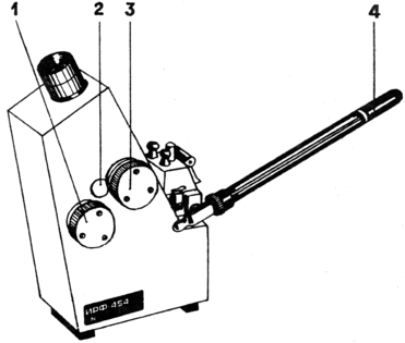1 - маховик; 2 - заглушка; 3 - маховик; 4 - термометр