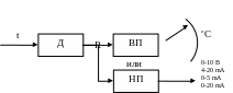 хема преобразования сигнала в датчике температуры:
