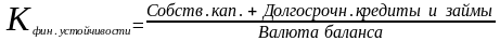 Для характеристики обеспеченности активов долгосрочными источниками финансирования рассчитывается коэффициент финансовой устойчивости: