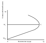 Рассматривая зависимость предложения труда от изменения ставок заработной платы, необходимо обратить внимание на то, что кривая предложения отдельным работником своего труда, описывающая эту зависимость, имеет несколько необычную форму: