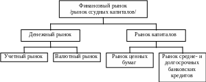 Финансовый рынок состоит из рынка ссудных капиталов и рынка ценных бумаг.