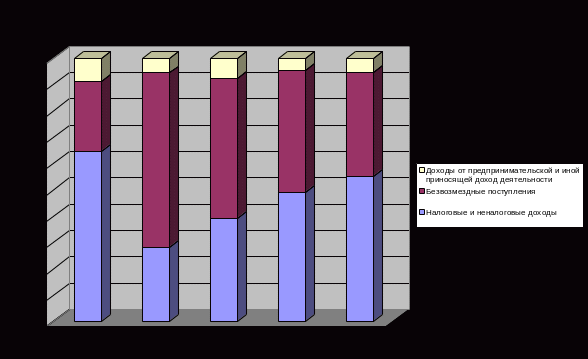 Удельный вес собственных доходов и доходов от предпринимательской деятельности в общей сумме доходов городского бюджета за последние три года увеличился с 47 % до 61 %, а отчислений от бюджетов других уровней уменьшился с 53 % до 39 %.
