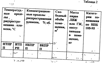 Вычислив ΔР в соответствии с НПБ 105-95, определить катего­рию помещения (учитывая, что для горючей жидкости с tвсп ≤ 61 °С нижний температурный предел распространения пламени, определённый экспериментально, можно приравнять к темпера­туре вспышки).