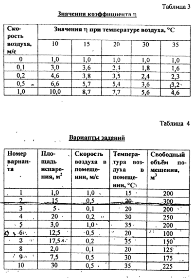 Fn - поверхность разлива (площадь Принимают 1м2 на 1 л разлившейся испарения), м2 жидкости. Вариант по табл. 4 задает преподаватель;