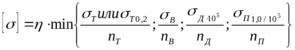 Допускаемое напряжение при расчёте статически нагруженных аппаратов, когда число циклов не превышает 1000 циклов определяется: