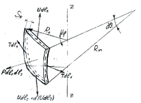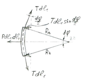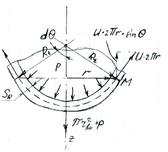 Для нахождения недостающего уравнения связи между неизвестными напряжениями, получим уравнения равновесия конечной зоны оболочки: