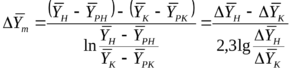 Следовательно, для прямолинейной равновесной зависимости средняя движущая сила процесса определяется как средняя логарифмическая между движущими силами в начале и в конце поверхности фазового контакта.