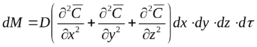 С другой стороны, ту же прибыль качества диффундирующего вещества в элементе параллелепипеда можно найти умножением объёма элемента на изменение концентрации за время