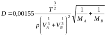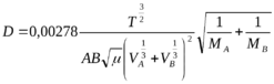 Коэффициент диффузии не является постоянной величиной; численные значения его обычно берут из справочников или находят по следующим формулам: