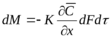 Количество вещества, переместившегося в твёрдой фазе за счёт массопроводности, пропорционально градиенту концентрации, площади, перпендикулярной направлению потока вещества, и времени, то есть: