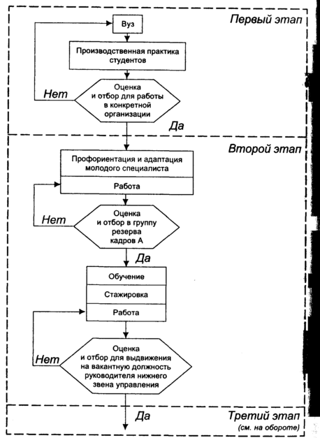 | Зачисление на постоянную работу. Планомерная ротация по должностям линейных руководителей и специалистов функциональных подразделений в организациях-филиалах. Стажировка у лучших руководителей. Наставничество, система ответственных, возрастающих по сложности поручений. Самостоятельное и организованное повышение квалификации. Систематическая оценка. | |||||