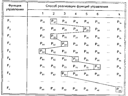 Морфологический анализ — средство изучения всевозможных комбинаций вариантов организационных решений, предлагаемых для осуществления отдельных функций управления персоналом. Если записать столбиком все функции, а затем против каждой функции построчно указать всевозможные варианты ее выполнения, то получим морфологическую матрицу (см. табл. 5.3). Идея этого метода заключается в том, чтобы сложную задачу разбить на мелкие подзадачи, которые легче решать по отдельности. При этом предполагается, что решение сложной задачи складывается из решений подзадач.