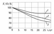 Рис.17.3. . Изменение модуля упругости стеклопластиков в парах воды при 30 0С.