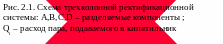 На рис.2.1 представлена типичная система из области химической техники – трехколонная ректификационная установка, предназначенная для разделения четырехкомпонентной жидкой смеси на отдельные в достаточной степени чистые компоненты А,В,С,D. На примере этой системы рассмотрим главные системообразующие характеристики, которые в тексте выделены курсивом