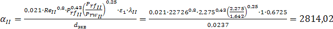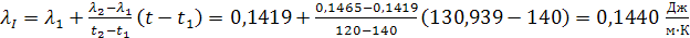 | Свойства теплоносителя при его средней температуре (tf), 0С Удельная теплоемкость, Дж/(кгК) Теплопроводность, Вт/(мК) Коэффициент динамической вязкости, Пас Плотность, кг/куб.м Объемный коэффициент термического расширения, 1/К | 130.939 3801.43 0.1440 0.0002102 692.4548 0.00218 | 78.123 4193.21 0.6725 0.000365 972.87 0.000620 | |