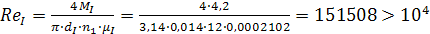 | Расход теплоносителя в трубах М1, кг/с 4.2 Внутренний диаметр кожуха D, м 0.10 Внутренний диаметр труб d1, м 0.014 | Число труб n, шт. 12.0 Толщина стенки трубы, м 0.001 Теплопроводность материала труб, Вт/(мК) 18.0 | ||