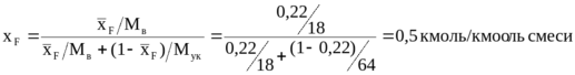 Условно-оптимальное значение R = 3,3. При R = 3,3 b = 1,57 Средние массовые расходы (нагрузки) по жидкости для верхней и нижней частей колонны определяют из соотношений; Lв = РRМверх/Мр (1.4) Lн = PRMниж/Мр+F´Mниж / МF , (1.5) где МP и MF - мольные массы дистиллята и исходной смеси; МВ и МН - средние мольные массы жидкости в верхней и нижней частях колонны. Мольную массу дистиллята в данном случае можно принять равной мольной массе легколетучего компонента. Средние мольные массы жидкости в верхней и нижней частях колонны соответственно равны: | ||||||||||||||||||||||||||||||