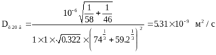 Тогда коэффициент диффузии в жидкости для верхней части колонны при 20 0С равен: